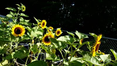 校務員さんが植えてくれたひまわりが大きくなりました。先日、アゲハ蝶も蜜を吸いに来ていました。また、今年はヘチマも実をつけました。学習のため、枯れる様子も大事。しばらくこのままです。