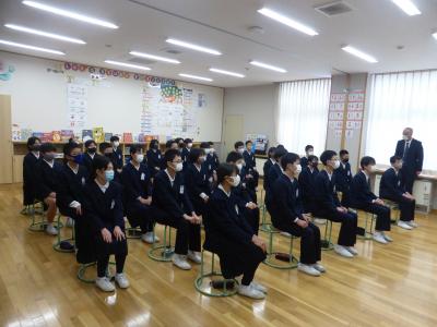 2月17日(水)七尾中学校から2名の先生にお越しいただき、中学校説明会を行いました。中学校入学にあたっての心がまえや入学後の日課等、いろいろと教えていただきました。お話を聞いた後、6年生は次から次と積極的に質問していたようです。