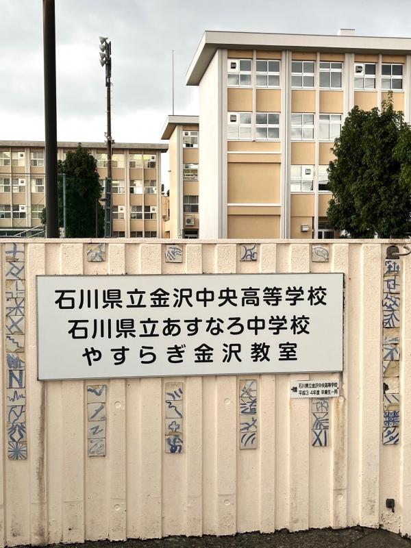 <校門左側の校名板(こうもん ひだりがわの こうめいばん)>