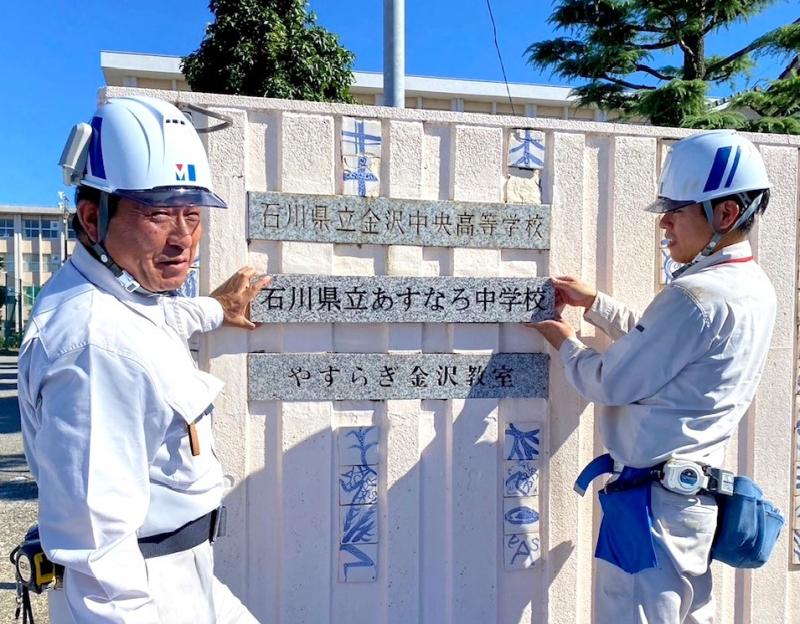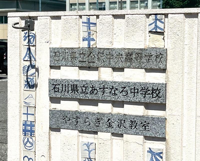 <校門右側の校名板(こうもん みぎがわの こうめいばん)>