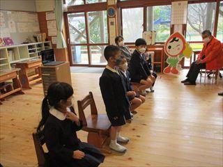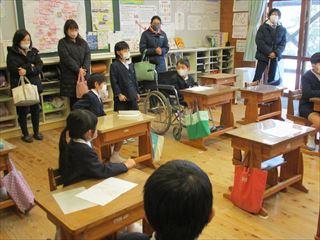 粟ノ保小学校の来年度の新入生は10名です。新入生の子どもたちのために,1年生が「きらきらぼし」を演奏したり,大縄跳びを披露したりしました。また,お店屋さんごっこをして紙飛行機やブンブンゴマなどをプレゼントしました。