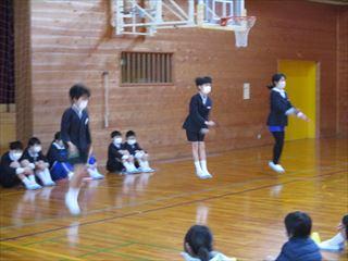 1月31日(火)になわとび集会がありました。個人跳びの得点と大縄8の字の得点を合計し,縦割り班対抗で競いました。子どもたちは練習してきた成果を発揮し,大変上手に跳んでいました。