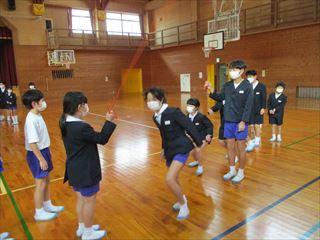 鼓笛の引継式をしました。6年生の中條さんから5年生の北出さんに指揮棒が渡された後,2~5年生で編制された新しい鼓笛隊で,校歌と宇宙戦艦ヤマトを披露しました。