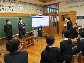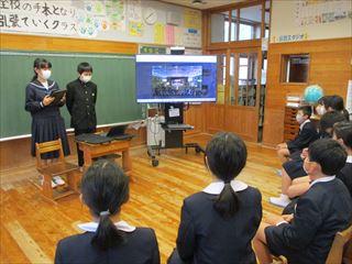 粟ノ保小を卒業した羽咋中1年生の橋本さん,保志場さんが来校し,中学校生活の魅力について伝えてくれました。6年生からの疑問や質問にも大変丁寧に答えてくれました。