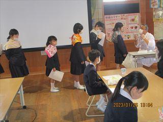 1年生が6年生に「卒業を祝う会」の招待状を渡しました。招待状を渡す際には,1年生から6年生への一言メッセージもあり,6年生は嬉しそうに聞いていました。2月24日(金)の13:30から「卒業を祝う会」を開催します。ぜひ,保護者の皆様,ご参観ください。