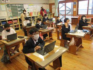 市内の特別支援学級の交流授業「ふれあいのつどい」がリモートで行われました。今回の「ふれあいのつどい」は,「そつぎょうをいわう会」でした。プレゼント紹介やビンゴゲームなどをしてみんなで楽しみました。