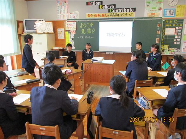 卒業生4名が,卒業を控えた6年生のために本校を訪れました。学習や部活動など,6年生の疑問に丁寧に答えてくれました。ありがとうございました。