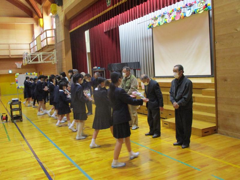 図書事務員さん・図書ボランティアの方々から卒業生へのプレゼントの贈呈がありました。