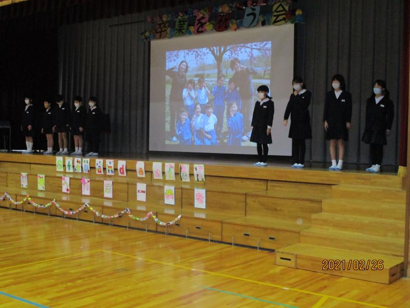 しました。「卒業を祝う会」では,6年生のために各学年が準備したダンスやクイズ・寸劇等が披露され