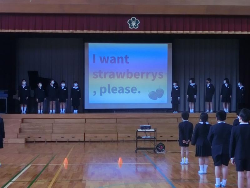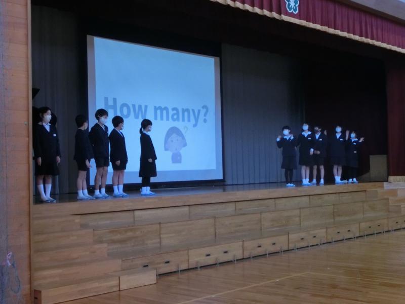 いくことの意味と大切さについてお話をしていただきました。そのあとの児童集会では,4年生が英語を