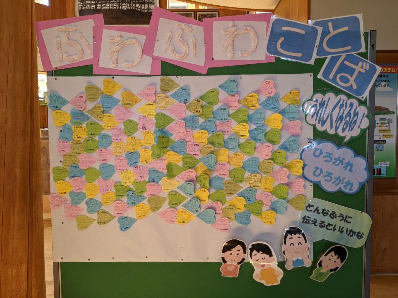 粟ノ保小全校児童でふわふわ言葉を考えました。みんなが気持ちよく学校生活を送れる