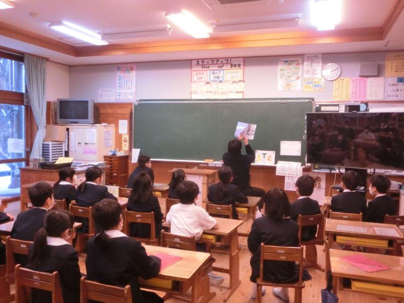 今年最初のブックタイムは,粟ノ保小の先生方が英語で読み聞かせを行いました。
