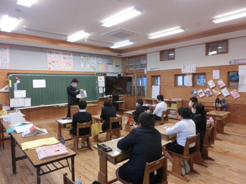 粟ノ保小学校の来年度の新入生は5名です。新型コロナ感染防止のため,今年度はリモートで交流しました。