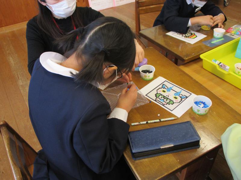 いなほ・まさご学級でビーズ作品作りに取り組みました。4人ともすごい集中力です。
