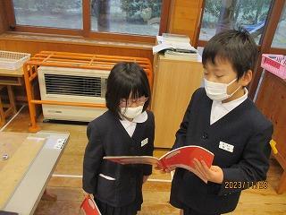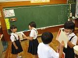 廊下を歩いていると,1年生教室から元気な音読の声が。この日は1年生が国語科で学習した「やくそく」の音読を校長先生に発表していました。読み方や動きの工夫を自分たちで考えたのだそうです。とてもはきはきした声で,素敵な音読でした。