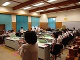 4年生は,理科の学習をしていました。ピストンの中に空気を閉じ込めて,その手ごたえについて言葉で表現していました。みんなで話し合って気付いたことを伝えたり,他の人の発表を,道具を使いながら分かりやすく説明したりすることができていました。