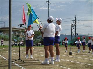 鼓笛の引継式をしました。6年生の北出岳朋さんから5年生の川崎結大さんに指揮棒が渡されました。その後,新しく2~5年生で編制された鼓笛隊で,マーチング・校歌・宇宙戦艦ヤマトを披露しました。