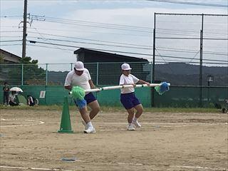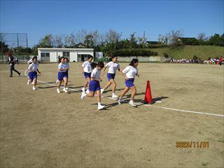 全学年対抗スポチャレ40mを行いました。スポチャレ40mは,2つの三角コーンの間40mを回って,次の人にバトンを渡していく種目です。どの子も最後の最後まで必死に走ってバトンを渡していました。