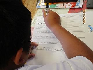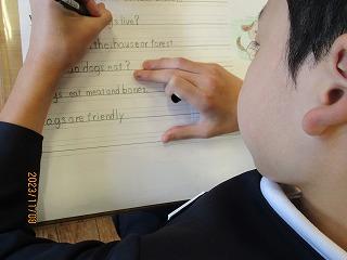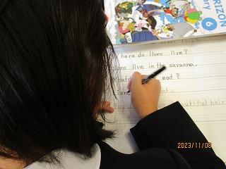 6年生は外国語の学習をしていました。生きものの住んでいる場所や,食べるものを調べて,英語で記録していました。