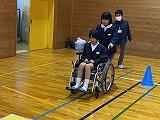 4年生の総合的な学習の時間に,ゲストティーチャーを招き,ちびっこボランティアスクールを行いました。車いすで生活している酒井さんを招き,生活のことや車いすのことを教えていただきました。また,車いすに乗ってみる体験もしました。