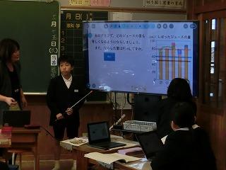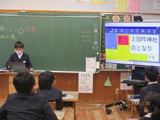 3年生は羽咋の七塚について調べたことをスライドにまとめ,発表していました。途中でクイズを交えるなど,工夫した発表になっていました。