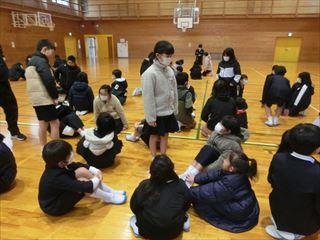 なわとび集会を行いました。個人跳びと大縄8の字跳びの得点を合計し,4色の縦割り班で競いました。子どもたちは練習してきた成果を発揮し,最後まで一生懸命跳んでいました。そのがんばる姿に大きな声で応援する姿も大変すばらしかったです。