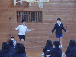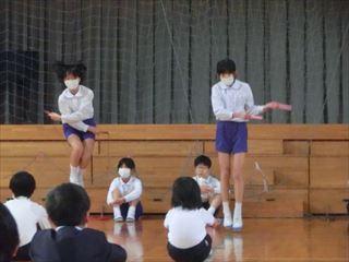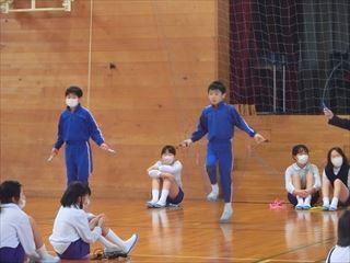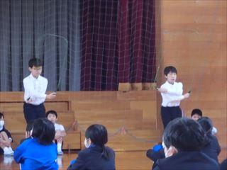 各学年のなわとび達人が技を紹介してくれました。これから自分の目標を決めて一生懸命練習をがんばります。