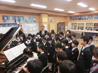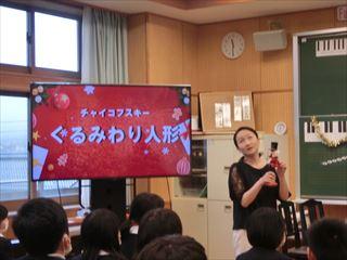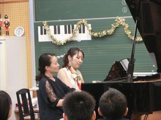 文化庁主催によるアウトリーチコンサートがありました。ピアノ連弾奏者の今井彩子さんと室井悠李さん,指導者の河井拓さんの3名が来校し,「ロンドン橋落ちちゃう」や「くるみ割り人形」などを演奏してくれました。本物の素敵な音楽に触れることができました。