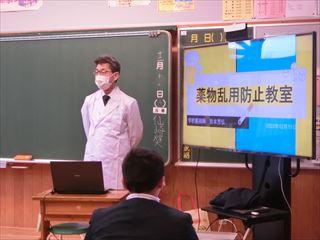 学校薬剤師の宮本芳弘先生を講師としてお迎えし,6年生を対象とした薬物乱用防止教室を実施しました。薬物の種類にはどのようなものがあるのか,なぜ薬物乱用がいけないのかなどについて詳しく学びました。また,たばこやお酒を誘われた時の断り方も考え,薬物から身を守るための対処法についても理解を深めることができました。