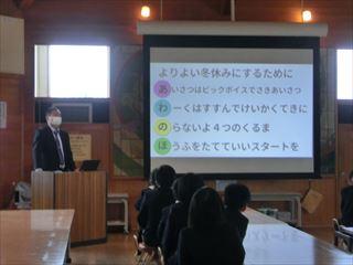 校長先生からは,2学期の授業や行事をふり返り,一人一人が一生懸命がんばっていたことをほめられました。三波先生からは,より良い冬休みにするために,ひまわり憲法ならぬ,「あわのほ憲法」についてのお話がありました。明日から楽しみな冬休みが始まりますが,規則正しい生活を心がけ,充実した休みになるようにしましょう。