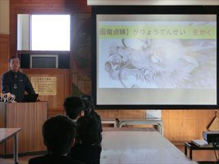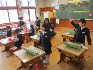 始業式では,校長先生が元旦に起きた地震について話し,全員が30秒間,黙とうをしました。登下校の際に気を付けることを話し,自分の命は自分で守るしかないことを改めて確認しました。また,今年の干支の辰年に関する四字熟語「画竜点睛」について話し,次の学年に向けて前を向いて頑張ろうと伝えました。その後,大谷選手から届いたグローブの贈呈式,生活目標の「場を清める」についてのお話がありました。グローブは各学年に順番に回し,全員に触ってもらう予定です。