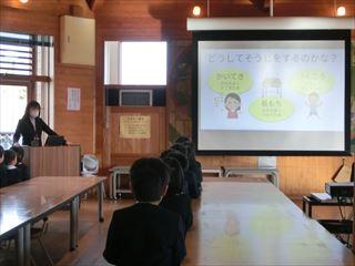 羽咋小の上田清香先生から,「食中毒にならないために」のお話をしていただきました。食中毒の好きな場所やかからないためにどうすれば良いのかなど,クイズを通して楽しく学ぶことができました。