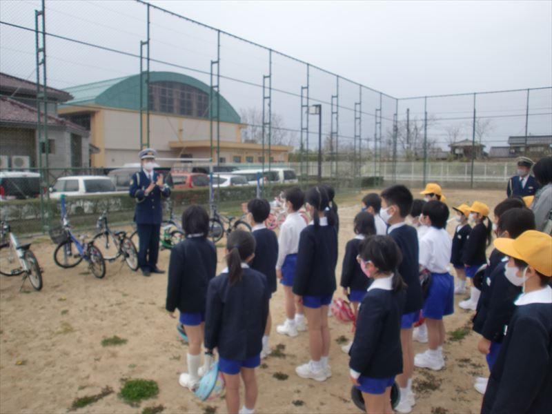 1・3年生を対象に、交通安全教室が行われました。羽咋警察署、交通安全協会粟ノ保分会、PTA生活指導