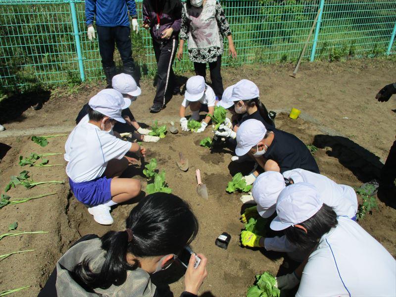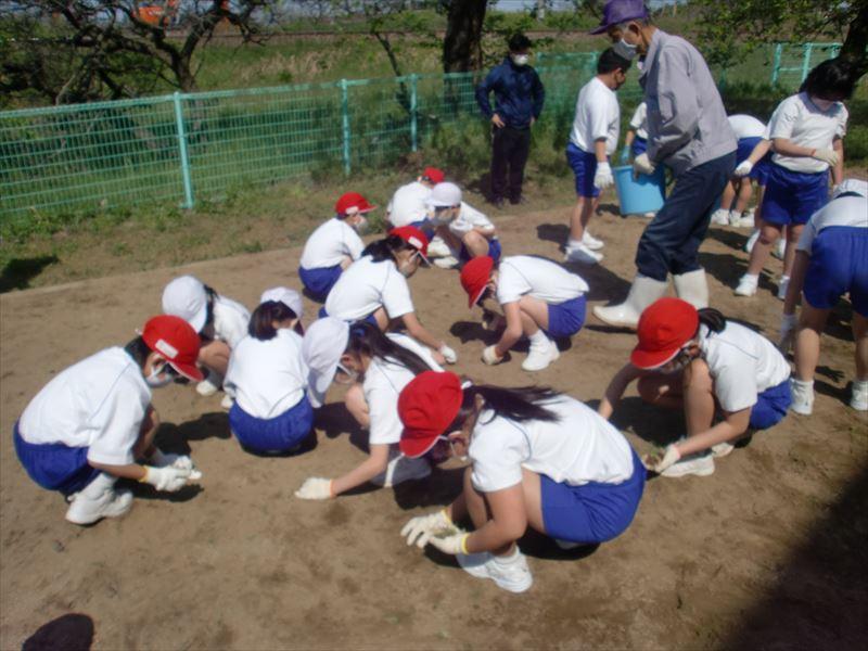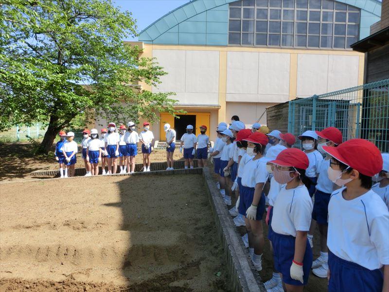 ようやく苗植えの日がやってきました。昨年度は、臨時休業のため畑の先生に全てしていただいた苗植えですが、