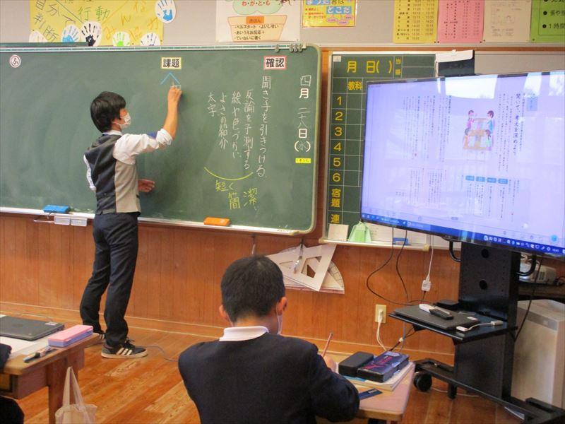 タブレット端末を使った授業が行われています。若狭さんには、先生方の授業や子どもたちの活動がスムーズ