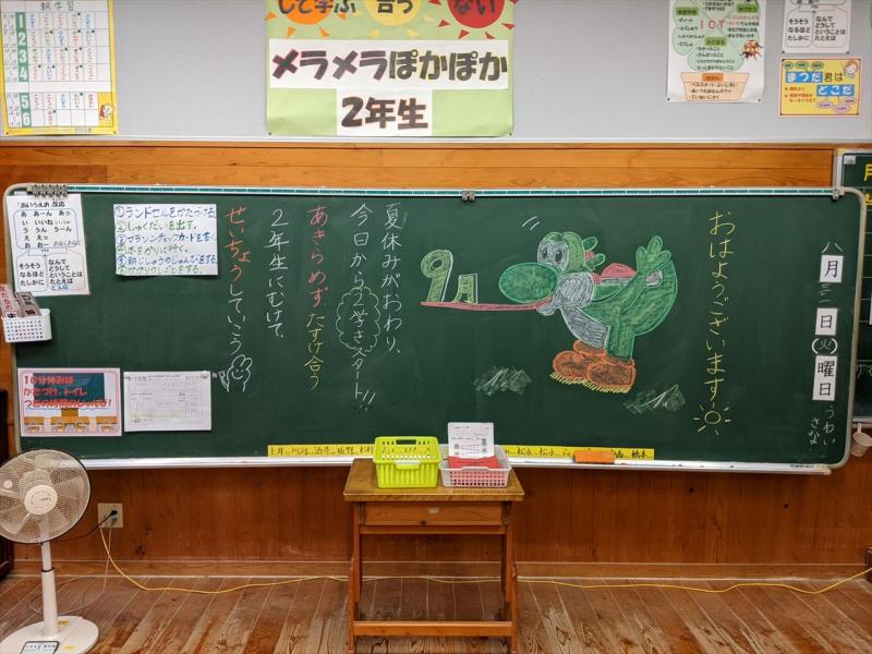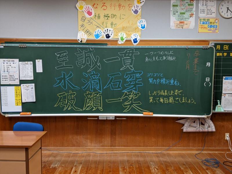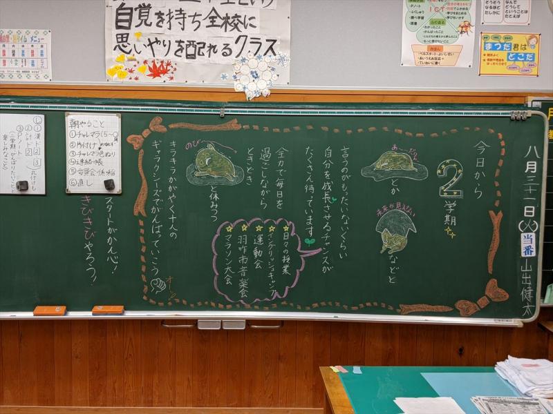 各学級では、担任の先生からのメッセージが子どもたちを迎えます。