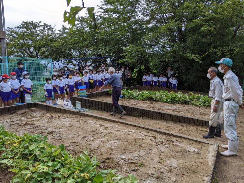 この夏は、畑の先生方のおかげで、たくさんの野菜を収穫することができました。この日は、秋野菜の