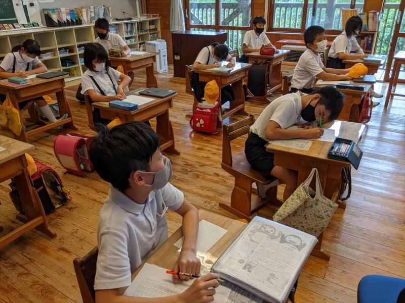 この日は、放課後の粟ノ保タイムに全校児童が「自分の得意なこと」をテーマに作文を書きました。