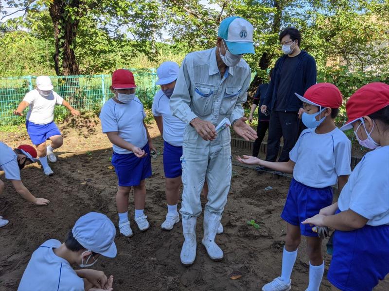 苗植えの前の土づくりの活動があり、畑の先生方のご指導でいろいろな肥料をまくことができました。