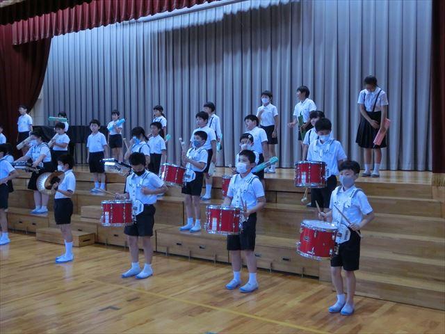 練習をしてきました。今年度初めて全体での練習、また行進しながらの練習をすることができました。2学期に