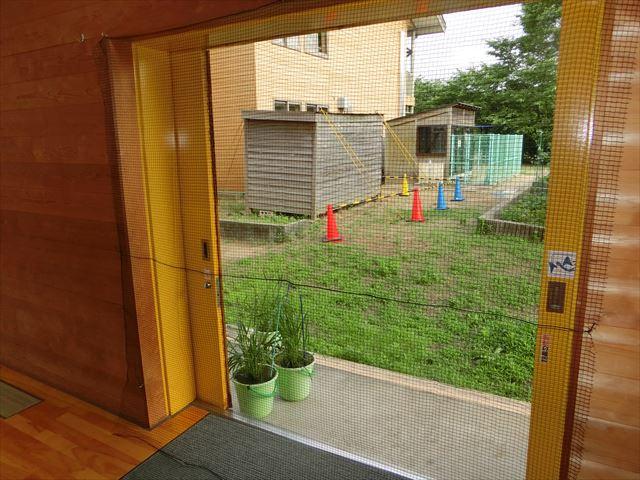 また、体育館の非常口に網を張り、風のとおりを良くして授業を行っています。