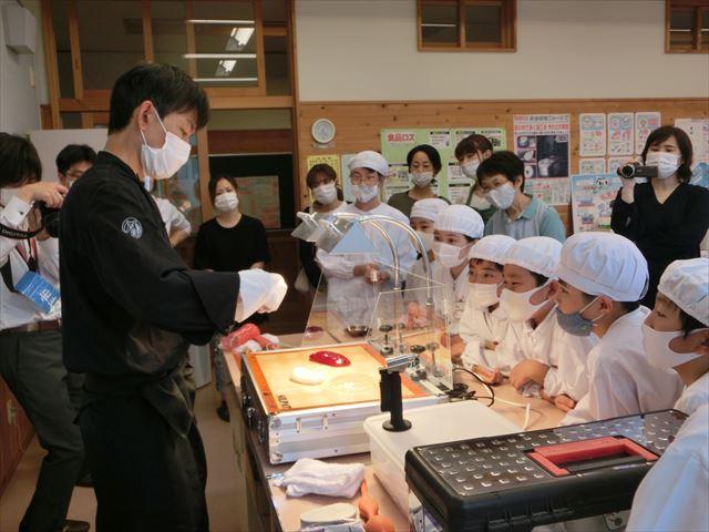 活動では、飴細工の制作過程を披露していただきました。子どもたちは、一流シェフのテクニックにとても驚いて