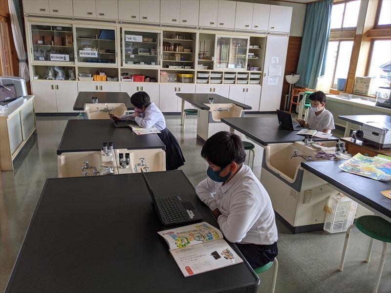 授業を4年教室、音楽室、理科室、相談室に分かれて行いました。