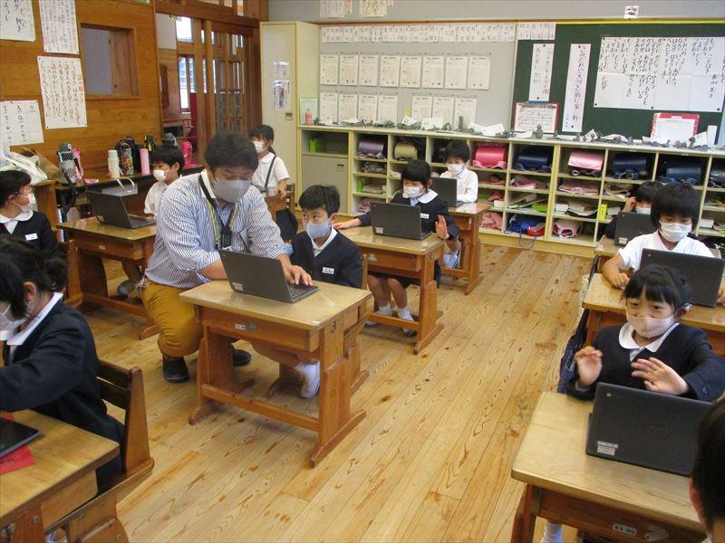 先日の4・6年生に続き、2・3・5年でもリモート授業に挑戦しました。ICTサポーターの若狭雄介さん