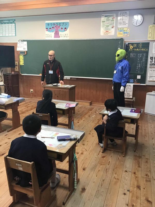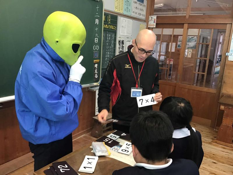2年教室にサンダー君登場 投稿日時 : 11:07 awanoe 12月19日(金)の2年生の授業に,なんとコスモアイル羽咋のサンダー君が姿を現しました。 これまでのかけ算の授業で,サンダー君がみんなに問題を出していたこともあり,今日はどれだけ「かけ算九九」を覚えたかを見に来てくれることになっていました。子どもたちは,本物の登場に「キャー」と一旦逃げながらも,一緒に九九かるたをしたり,フラッシュカードの問題に答えたりして,楽しく学習しました。 Tweet {{options.likeCount}} {{options.likeCount}} {{options.unlikeCount}} {{options.unlikeCount}} 0 コメント