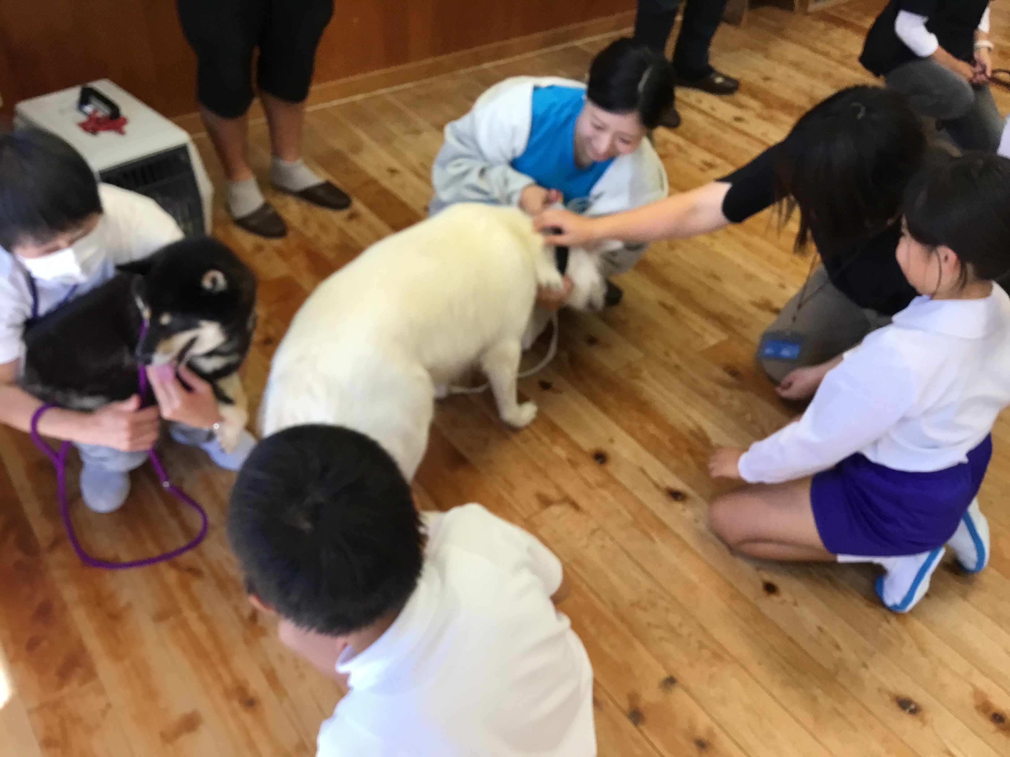 たくさんの犬とふれ合えたよ 投稿日時 : 2025/10/20 awanoe 10月17日(金)に,いしかわ動物愛護センターの「子どもと犬のふれあい教室」が行われました。1,4年生が参加し,動物の気持ちや周りの方々の気持ちを想像する講義を受けた後,講師の方から「犬との正しい接し方」などを教わりました。犬を触る時には,最初に犬の鼻の前に手を出し,においを嗅いでもらうということでしたが,恐る恐る手を伸ばしていた子どもたち。慣れてくると,自分から近づいて挨拶をし,飼い主さんたちともお話を楽しんでいました。 Tweet {{options.likeCount}} {{options.likeCount}} {{options.unlikeCount}} {{options.unlikeCount}} 0 コメント