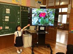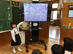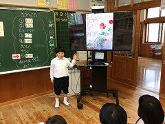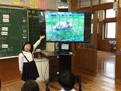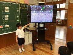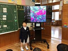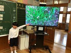 1年生が電子黒板を使って発表をしていました。入学して約2週間。しっかり学校生活や授業に慣れてきていますね。