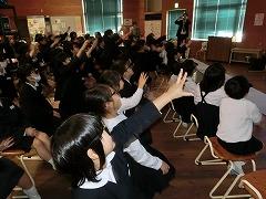 OKINAWA SAKANA CONPANY・JALのスタッフの方々が来校し,沖縄美ら海水族館の3Dシアターを上映してくださいました。子ども達は,目の前に浮かび上がる魚,ジンベイザメ,マンタなどに騒然!「おー!」「すごい!」「でっかい!」と歓声が溢れました。沖縄の海,そして有数の水族館の世界に入り込んだ,とてもすてきな時間となりました。