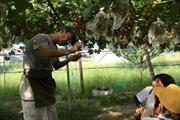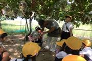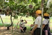 3年生は総合で,西田さんの畑の見学へ行ってきました。1学期にもたくさんの野菜畑を見学し,味わわせていただきましたが,今回はその時にまだ小さかったぶどうを中心に見せていただきました。秋の大きく育ったブドウ,そしてマスカットなどを見せていただくとともに「おみやげ」も多くいただきました。ありがとうございました。