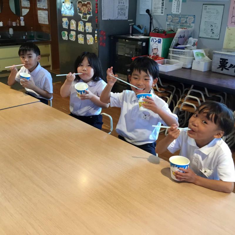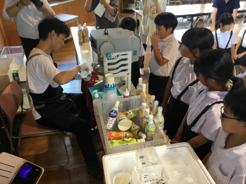 9月2日(火)に,「能登半島をめぐるかき氷キャラバン」として活動している飯塚さんが,粟ノ保小学校に来てくれました。金沢のクラモト氷業さんの「金澤氷室」と言われる透明な氷を触らせてもらい,見た目や感触を楽しんでいました。そうこうしているうちに,お待ちかねのかき氷タイム!子どもたちは,好きなシロップを選んでかき氷を作ってもらいました。一口食べて「ふわっ,ふわ。」と驚きの声を上げて,あっという間に平らげたのでした。